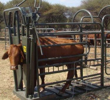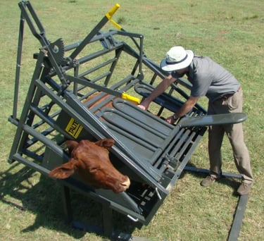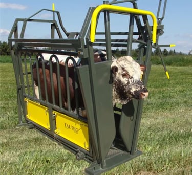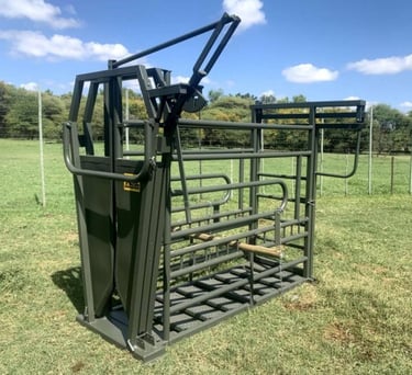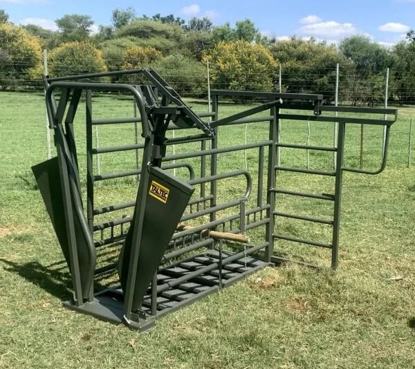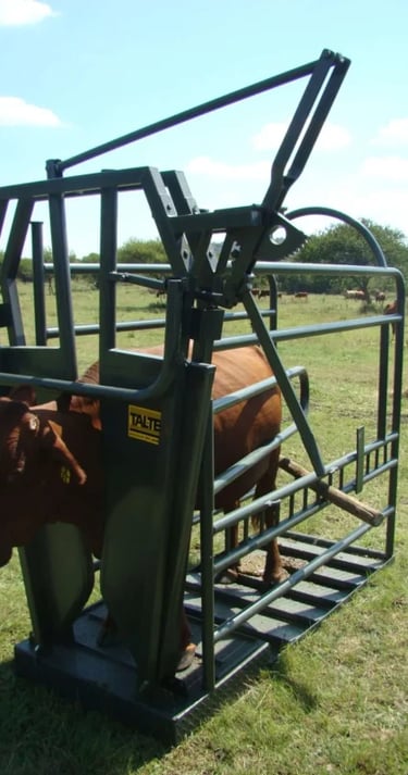 The calf and tollie tilt, tilts the animal on its right side for easy access to the left. Suitable for calves aged 10 weeks to 6 months. It cannot be used as a scale.