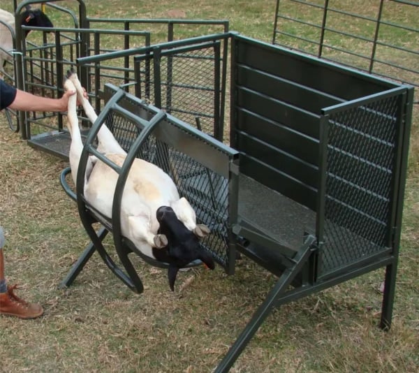 The sheep tilt offers a stable platform for tasks like dosing and hoof trimming by tilting the sheep on its side, making work easier and more comfortable.